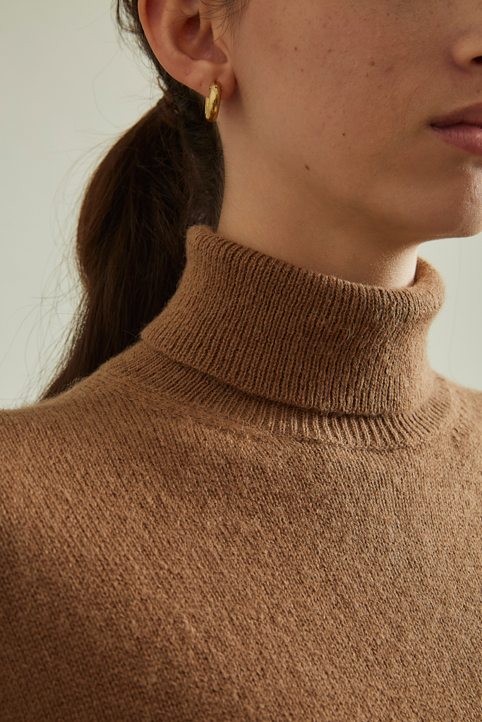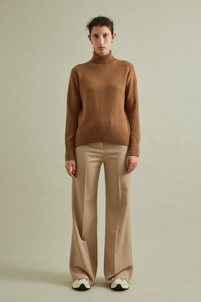 Tejida en la más fina fibra de Royal Alpaca, KALLPA se destaca con sutiles detalles. De silueta holgada, largo a la cadera y cuello alto, esta polerita de lujo es abrigada y cómoda. Su originalidad está en las mangas, que cuentan con una pequeña apertura en V; y en la línea vertical que recorre la espalda, para brindar un toque singular.